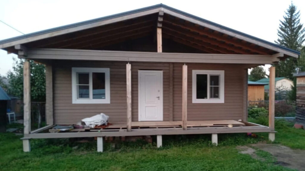 Дачный дом 7х8 из профилированного бруса. Жилой дом из массива сосны зимней рубки, сечением 150х150h. Цена под усадку 1 750 000 рублей. Цена актуальна на момент публикации.