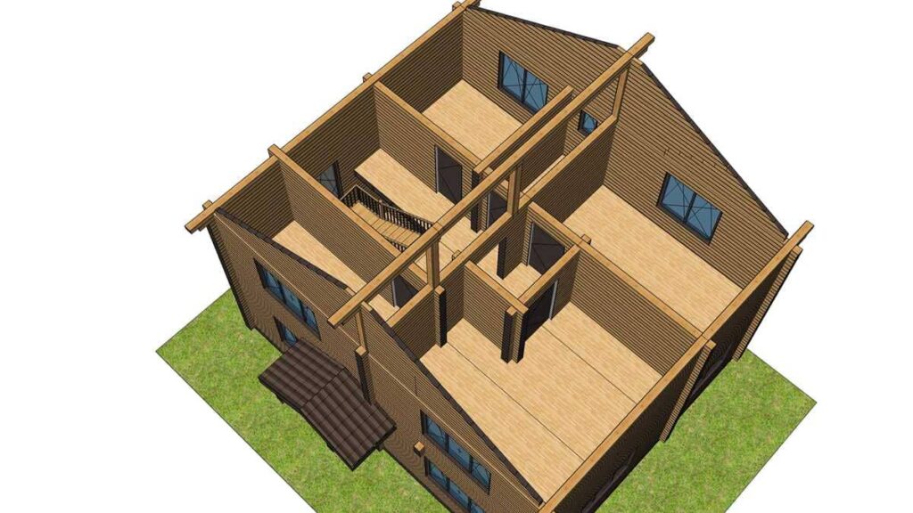 В стоимость входит монтаж стенового комплекта, балок перекрытий, кровлей покрытой металлочерепицей, свайный ЖБ фундамент.. Детали стен изготавливаются в заводских условиях, что ускоряет сборку на объекте и минимизирует строительный мусор, так же вы можете приобрести домокомплект для самостоятельной сборки, цена комплекта стен 2 108 000 руб.