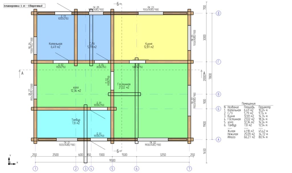Планировка дома 9,7х8 включает в себя: