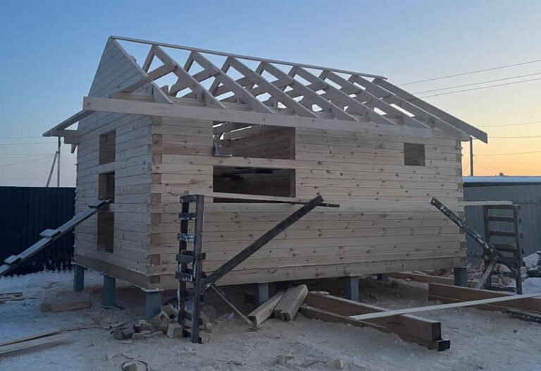 Устанавливаем балки перекрытия и собираем второй этаж (если предусмотрен).