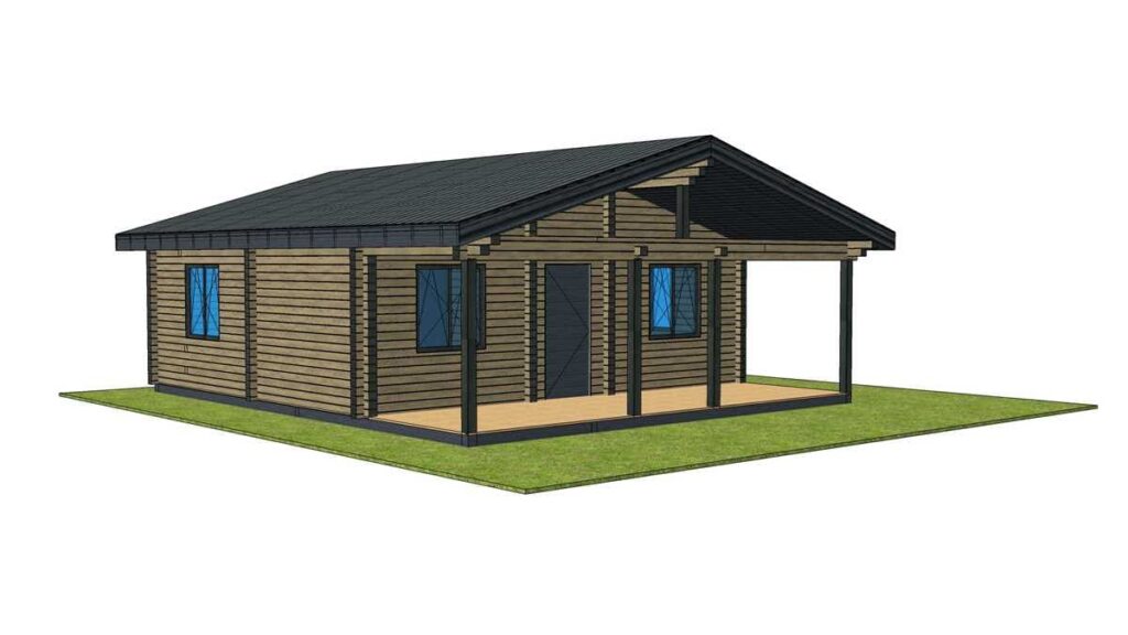 В стоимость входит монтаж стенового комплекта, балок перекрытий, кровлей покрытой металлочерепицей, свайный ЖБ фундамент. Детали стен изготавливаются в заводских условиях, что ускоряет сборку на объекте и минимизирует строительный мусор, так же вы можете приобрести домокомплект для самостоятельной сборки, цена комплекта стен 27 м3 — 661 500 руб.