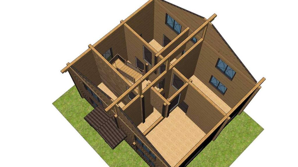 В стоимость входит монтаж стенового комплекта, балок перекрытий, кровлей покрытой металлочерепицей, свайный ЖБ фундамент.. Детали стен изготавливаются в заводских условиях, что ускоряет сборку на объекте и минимизирует строительный мусор, так же вы можете приобрести домокомплект для самостоятельной сборки, цена комплекта стен 2 108 000 руб.