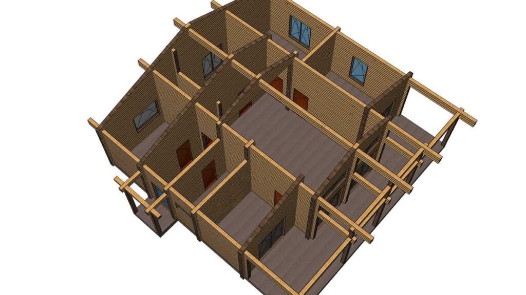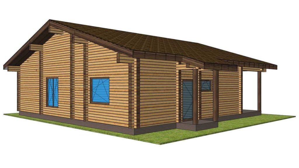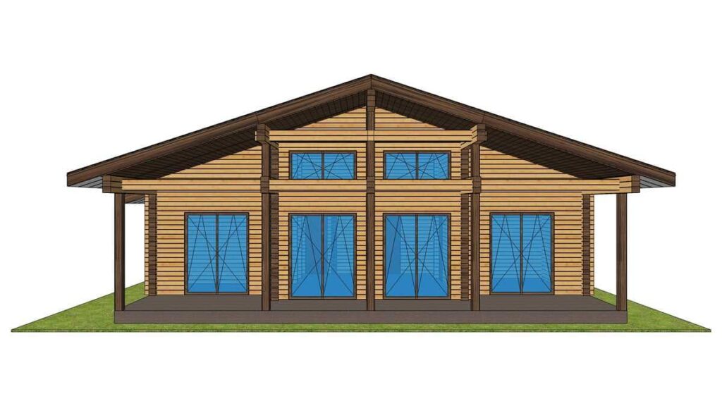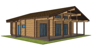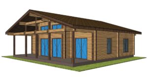 В стоимость входит монтаж стенового комплекта, балок перекрытий, кровли с утеплением над гостиной и покрытой металлочерепицей, свайный ЖБ фундамент. Доставка материалов до места сборки рассчитывается индивидуально. Детали стен изготавливаются в заводских условиях, что ускоряет сборку на объекте и минимизирует строительный мусор, так же вы можете приобрести домокомплект для самостоятельной сборки, цена комплекта стен 1 800 000 руб.