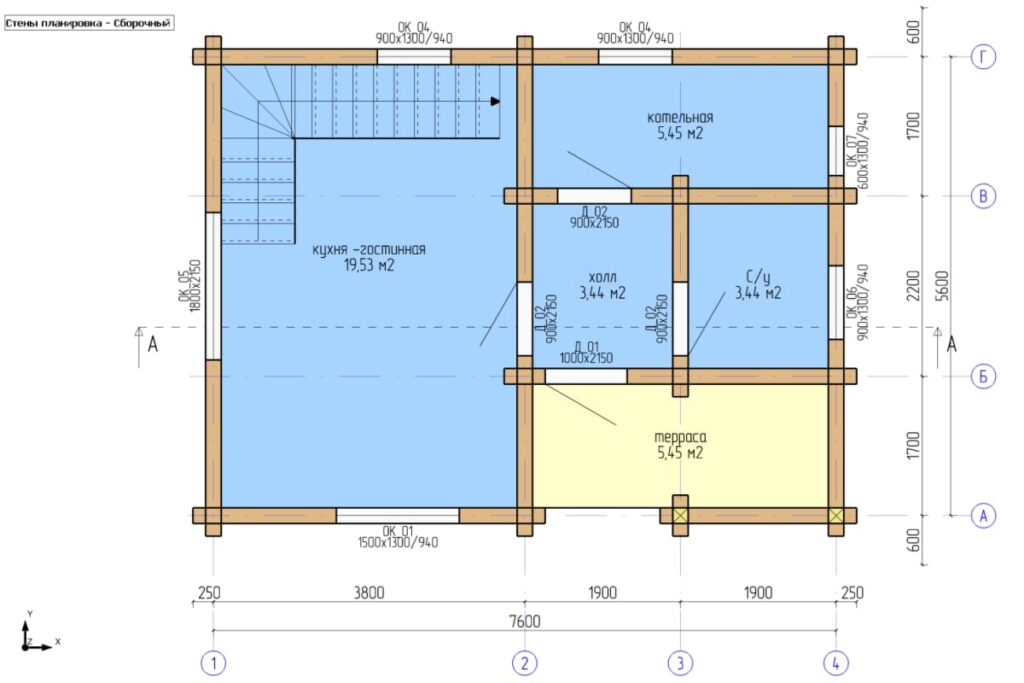 Общая площадь дома 70 м2.