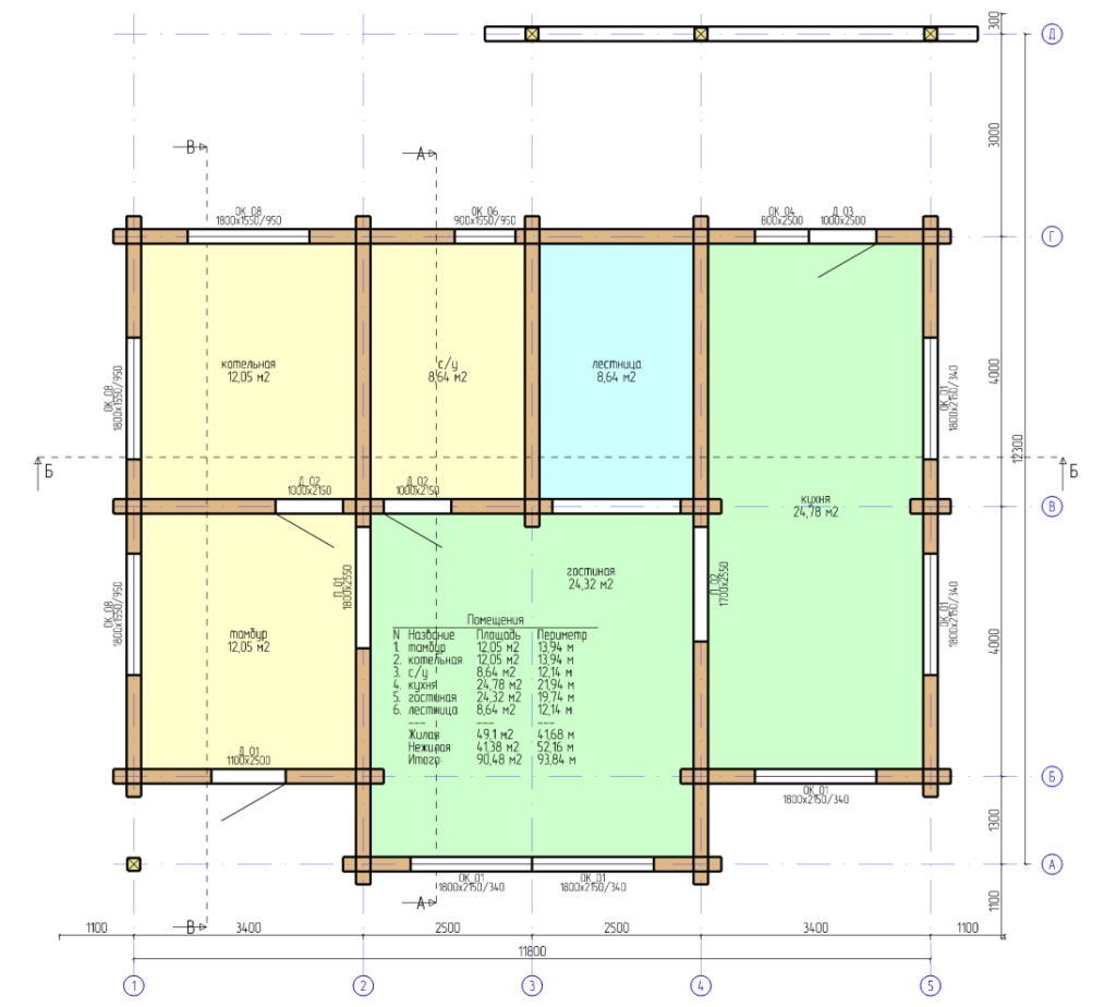 Планировка дома 8,2х12 включает в себя:
