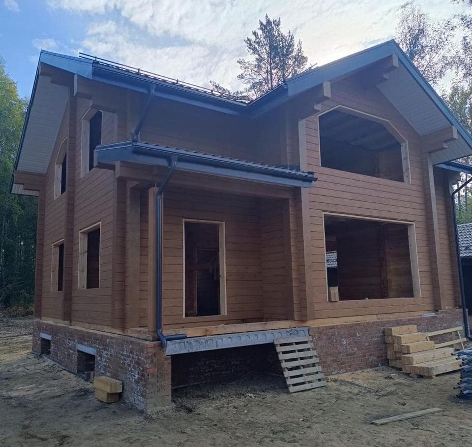 Цена дома 160 м2 при сборке под усадку из профилированного бруса 200х150h (сосна) 5 360 000 рублей.