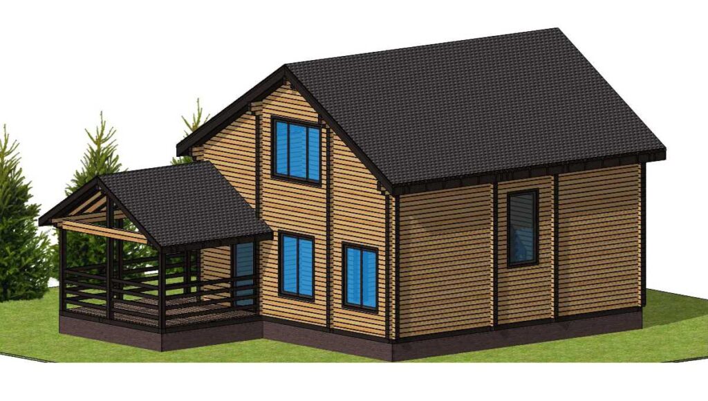 В стоимость входит монтаж стенового комплекта, балок перекрытий, стропильной системы и мягкой кровли с утеплением. Фундамент —ленточный. Возможен свайный фундамент. Вариант и стоимость мягкой кровли оценивается после согласования коллекции. Доставка материалов на участок рассчитывается отдельно. Детали проекта изготавливаются в цехе, что ускоряет сборку на объекте и минимизирует строительный мусор.