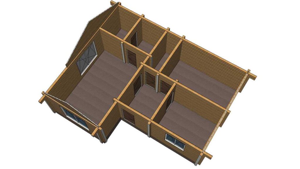 В стоимость входит; свайный ЖБ фундамент, монтаж стенового комплекта, балок перекрытий, кровли покрытой металлочерепицей. Доставка материалов до места сборки рассчитывается индивидуально. Детали стен изготавливаются в заводских условиях. Вы можете приобрести домокомплект для самостоятельной сборки, цена комплекта стен 1 050 000 руб.