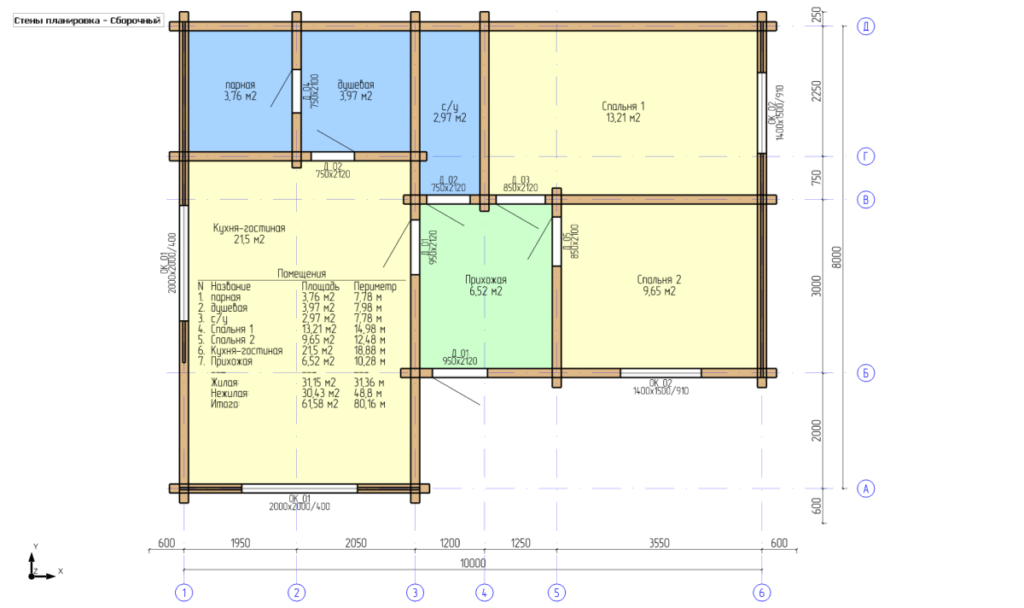Планировка дома 6х10 включает в себя: