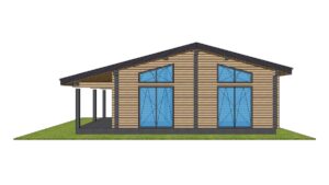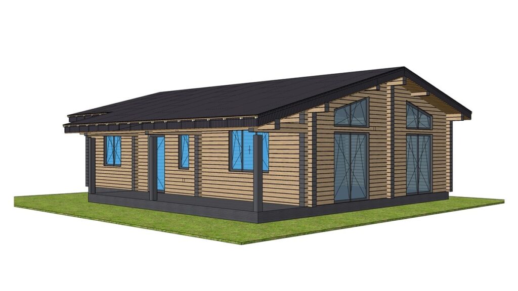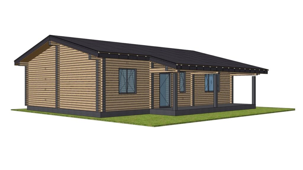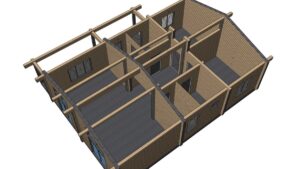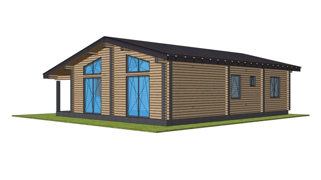 В стоимость входит монтаж стенового комплекта, балок перекрытий, кровли с утеплением над гостиной и покрытой металлочерепицей, свайный ЖБ фундамент. Доставка материалов до места сборки рассчитывается индивидуально. Детали стен изготавливаются в заводских условиях, что ускоряет сборку на объекте и минимизирует строительный мусор, так же вы можете приобрести домокомплект для самостоятельной сборки, цена комплекта стен 1 400 000 руб.